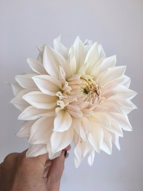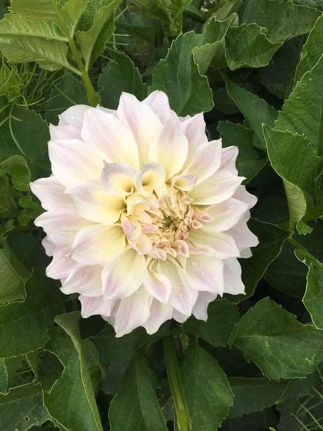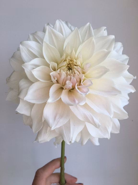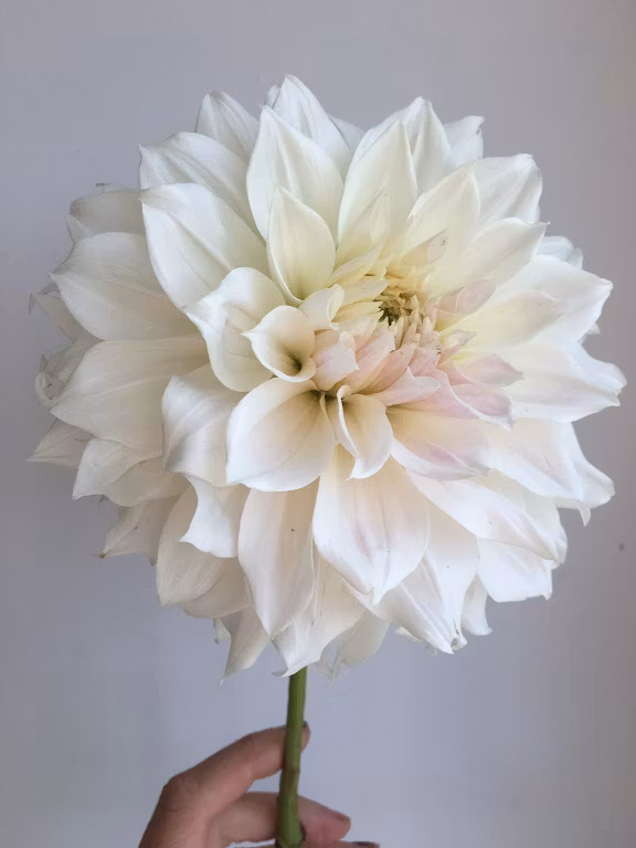 En mycket fin lite större dekorativ dahlia som skulle passa utmärkt i en romantisk samplantering eller i ett bröllopsarrangemang med sina ljusa toner som skiftar från lätt champagnefärgad till vit. En bra ovh stadig sort som inte nickar trots sina ganska stora blommor.